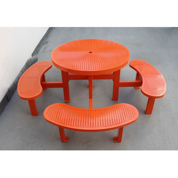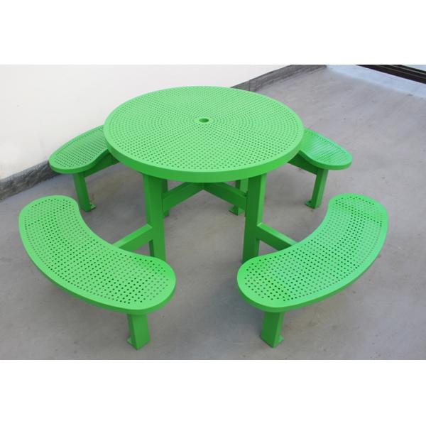 Customized Round Outdoor Picnic Tables , Metal Table And Bench Set With Parasol Images |